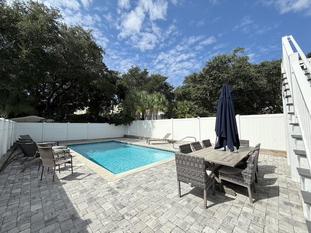 1st Floor: Kitchen, dining room, living room with a balcony and chairs. Bedroom (1) 1 King with private bathroom and covered balcony overlooking the pool. Half bathroom next to kitchen.